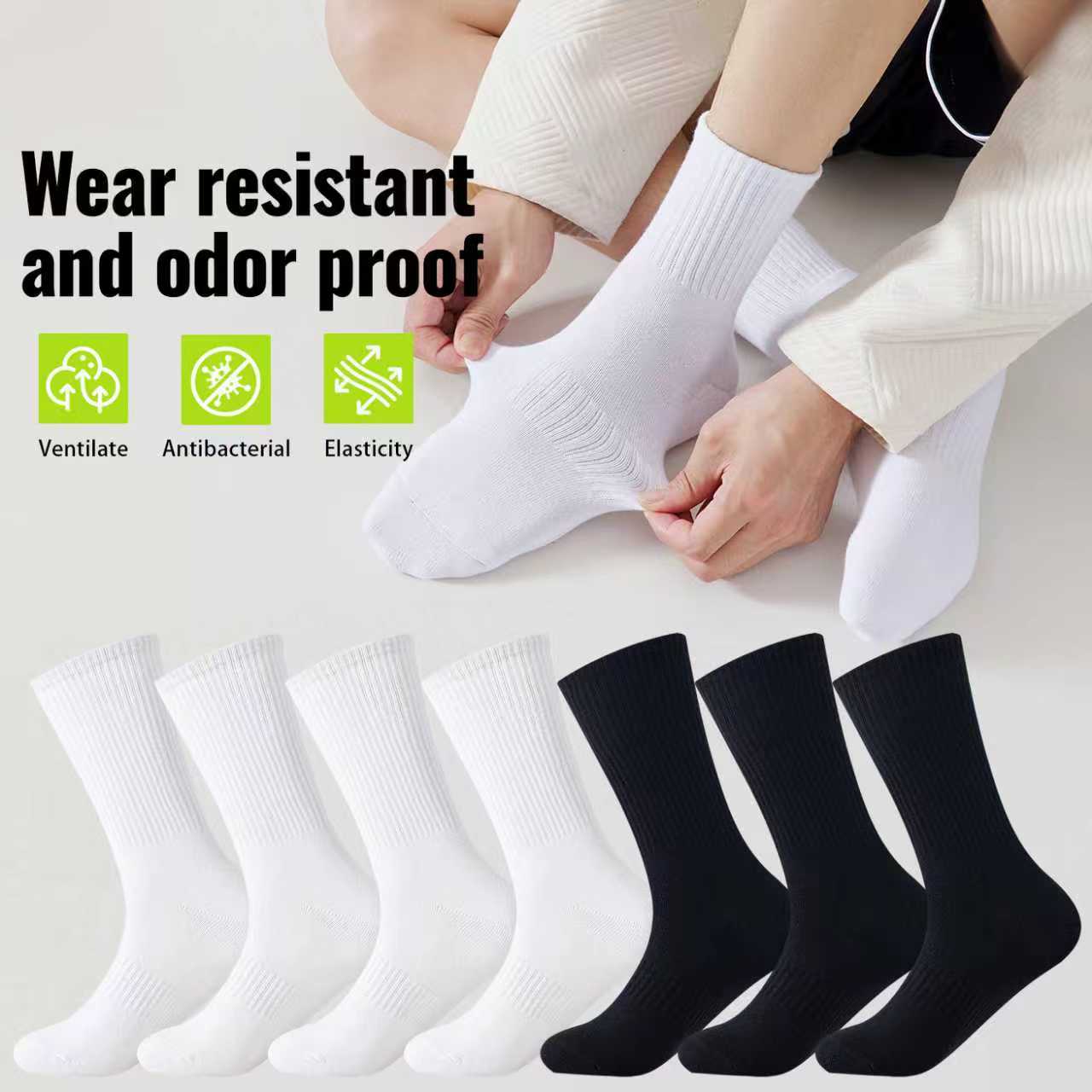 These socks are wear-resistant and odor-proof, available in classic black and white, suitable for various styles. They are ventilating, which can quickly wick away moisture from your feet to keep them dry. With antibacterial function, they effectively inhibit odor. Also, they have excellent elasticity to fit your feet snugly without slipping or deforming. The wear-resistant material makes them durable. Whether for daily commuting, sports, or casual home wear, they provide a comfortable wearing experience, making them a practical choice to enhance your foot care.
