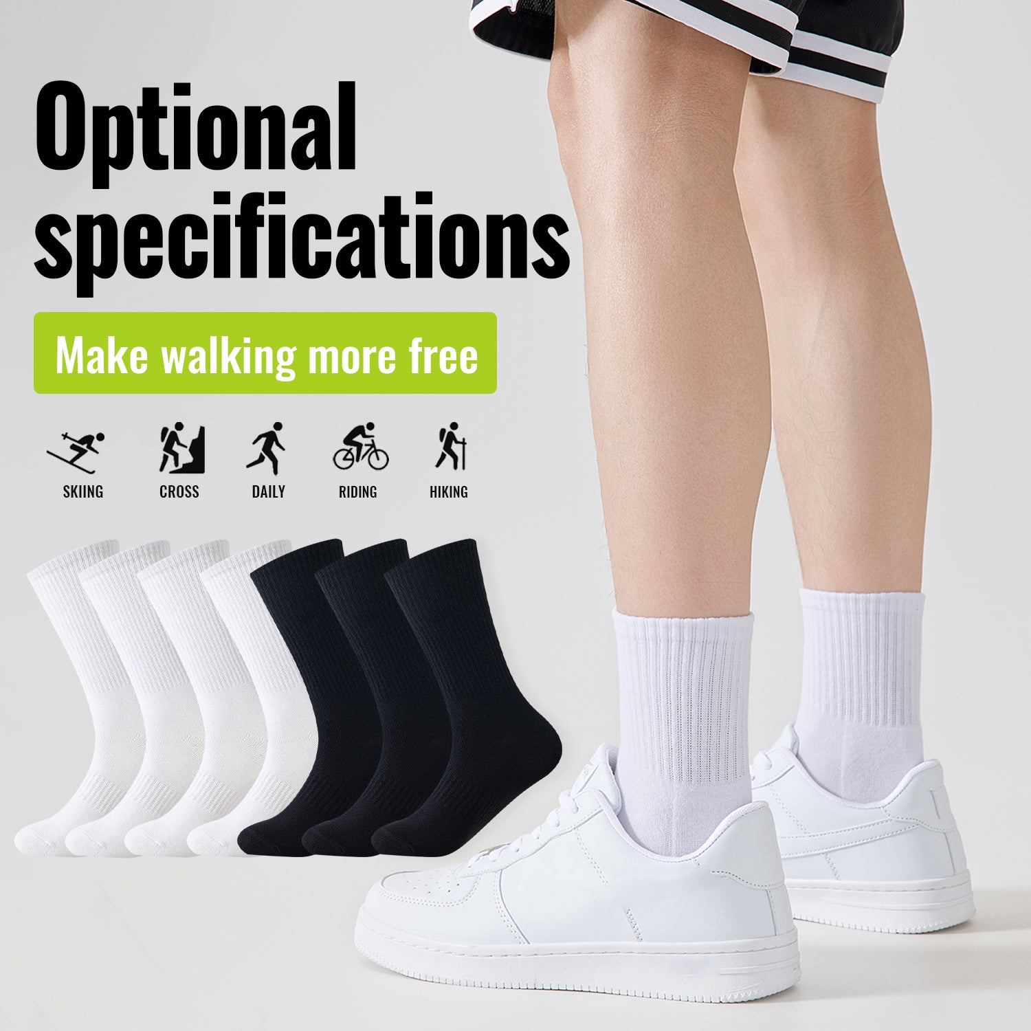 Multifunctional Training and Commuting Socks: Your New Companion for Sports and Daily Wear Whether it's a thrilling sprint during a run, a steady climb on a mountain, an energetic competition in ball games, or a comfortable outfit for daily commuting, these training and commuting socks are a perfect fit. They are crafted using professional weaving techniques, ensuring both breathability and abrasion resistance. The design conforms to the curves of the foot, offering a unrestricted wearing experience. The simple black style easily blends in with various types of sports gear and daily clothing, allowing you to present a neat and tidy appearance in every scenario, enhancing your sports performance and adding charm to your daily look.